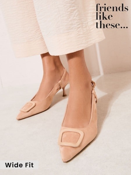 Friends Like These Faux Suede Nude Wide Fit Buckle Detail Slingback Kitten Heel Smart Court Shoes