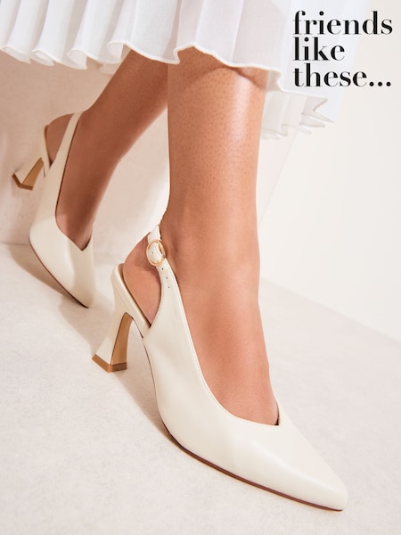 Friends Like These Faux Leather Ecru Wide Fit Slingback Mid Stiletto Heel Smart Court Shoes