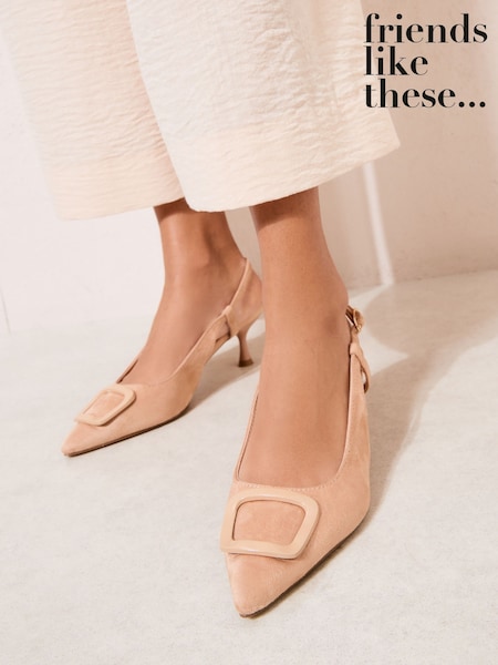 Friends Like These Faux Suede Nude Standard Fit Buckle Detail Slingback Kitten Heel Smart Court Shoes