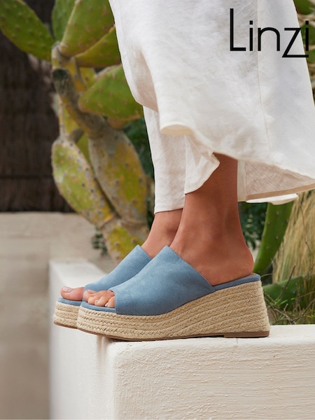 Linzi Blue Espresso Espadrille Mule Sandals