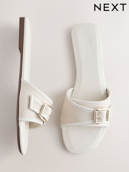 Neutral Suede Leather Strap Buckle Detail Sandals