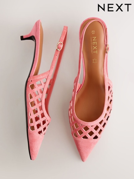 Pink Forever Comfort® Leather Lasercut Slingback Heels