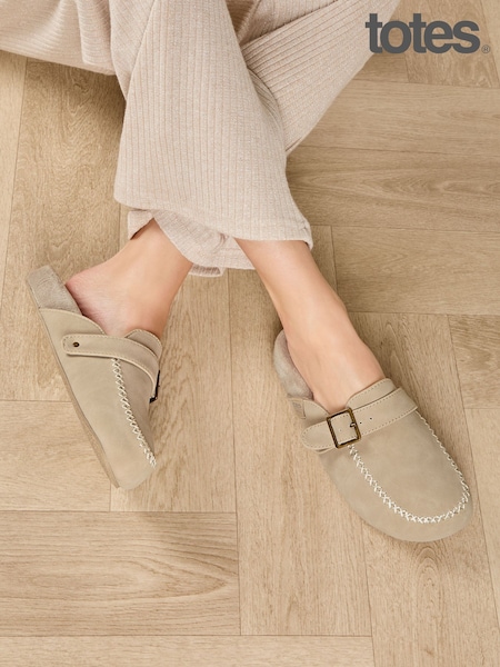 Totes Natural Isotoner Suedette Open Back Moccasin Slippers
