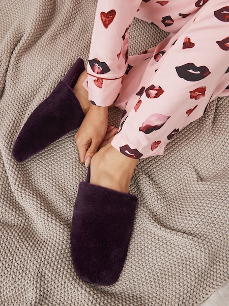 Burgundy Red Faux Fur Mule Slippers