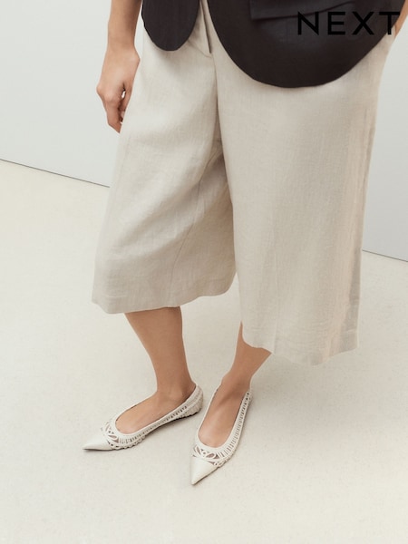 White Standard/Wide Fit Forever Comfort Raffia Point Toe Slingback Heels