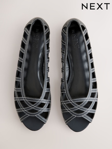 Black Standard Fit Forever Comfort® Peeptoe Flats