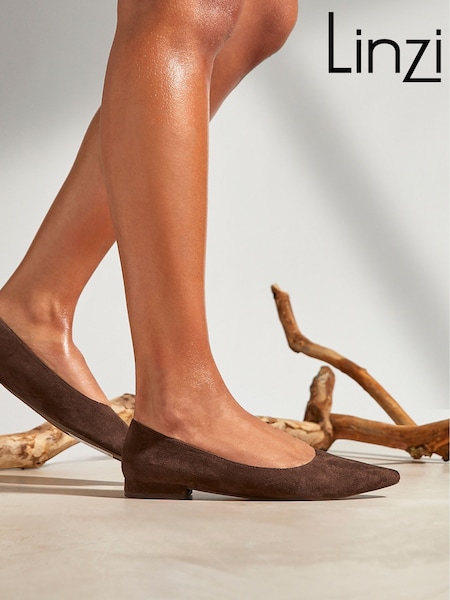 Linzi Brown Wide Fit Compete Pointed Toe Ballet Flat Shoes