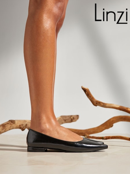 Linzi Black Focus Pointed With Top Stitching Toe Ballet Flats