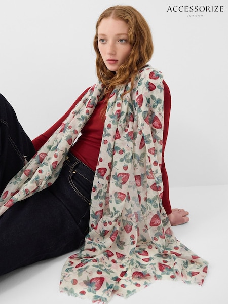 Accessorize Cream Lightweight Strawberry Print Scarf