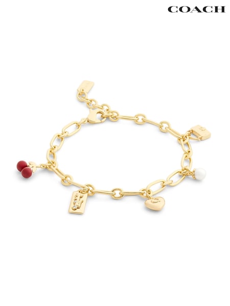 COACH Gold Tone Signature Cherry Charm Link Bracelet
