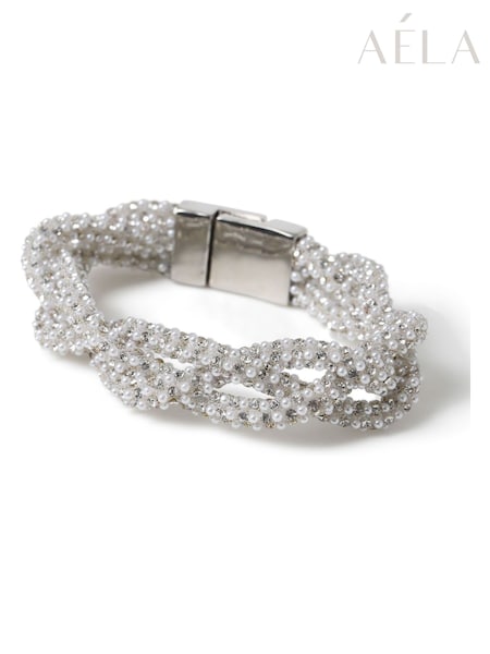Aela Silver Tone Pearl Plaited Magnet Bracelet