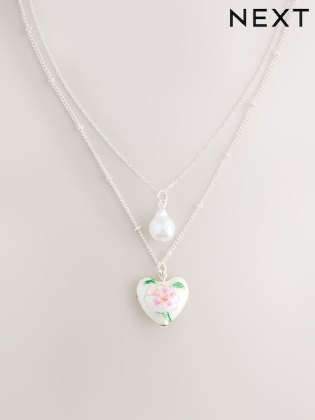 Pink 2 Layer Enamel Heart Necklace