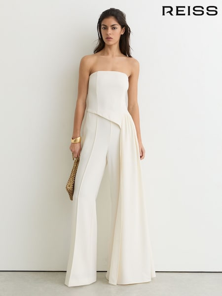 Reiss Ivory Leah Strapless Drape Wide-Leg Jumpsuit