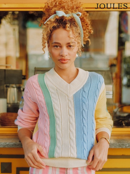 Joules Multi Stripe Cable Knit Cricket Cotton Jumper