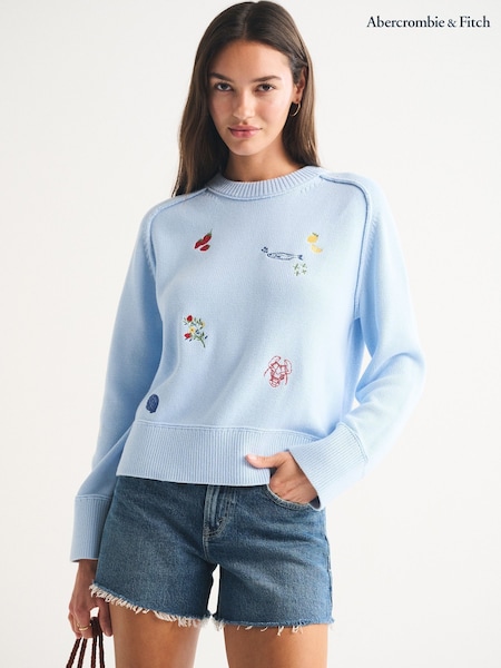Abercrombie & Fitch Blue Long Sleeve Crew Neck Graphic Jumper