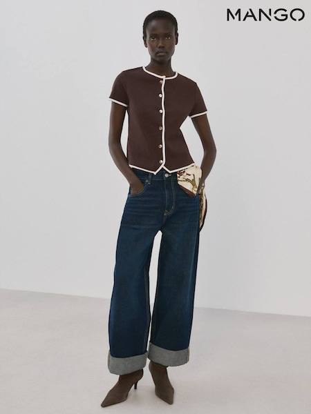 Mango Brown Short Sleeve Contrast Cardigan