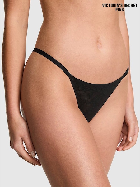 Victoria's Secret Pink Black G-String No Show Lace Knickers