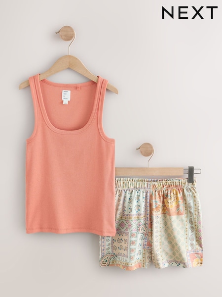 Orange Paisley Rib Vest Shorts Pyjamas Set