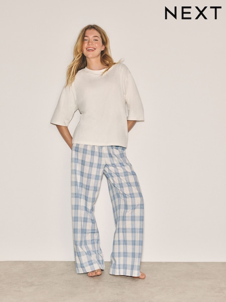 Blue Check Flannel Short Sleeve Pyjamas