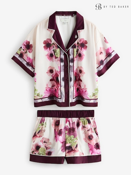B by Ted Baker Satin Button Through Ecru Floral Short Pyjamas Set