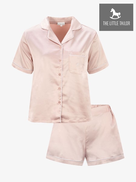 The Little Tailor Pink Satin Button Through Short Pyjamas Set