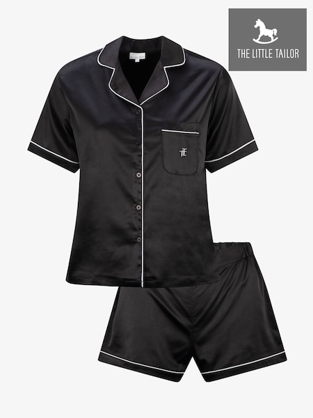 The Little Tailor Black Satin Button Through Short Pyjamas Set