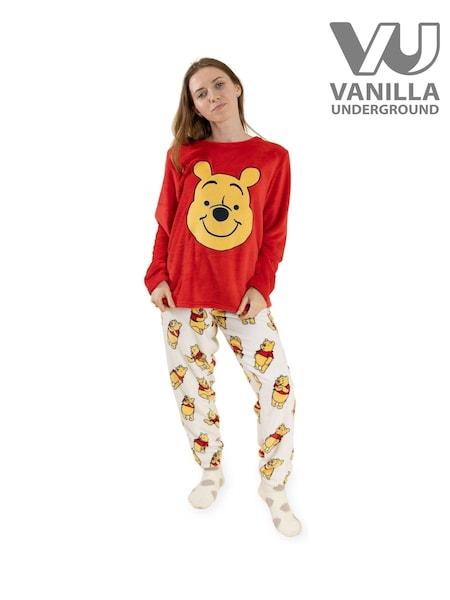 Vanilla Underground Red Winnie The Pooh Bear Fleece Long Sleeve Leg Pyjamas Set