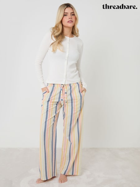 Threadbare Cream Stripe Button Front Cotton Pyjamas Set