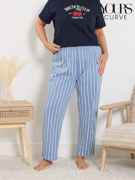Yours Curve Blue Striped Wide Leg Pyjama Bottoms