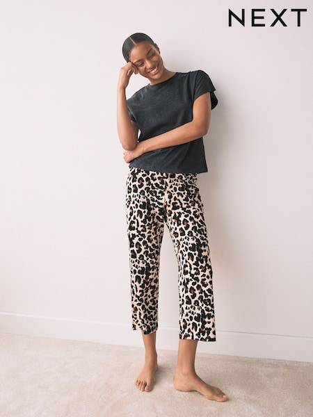 Charcoal Leopard Cropped Short Sleeve Pyjamas