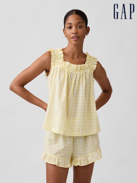 Gap Yellow Gingham Ruffle Poplin Pyjama Top