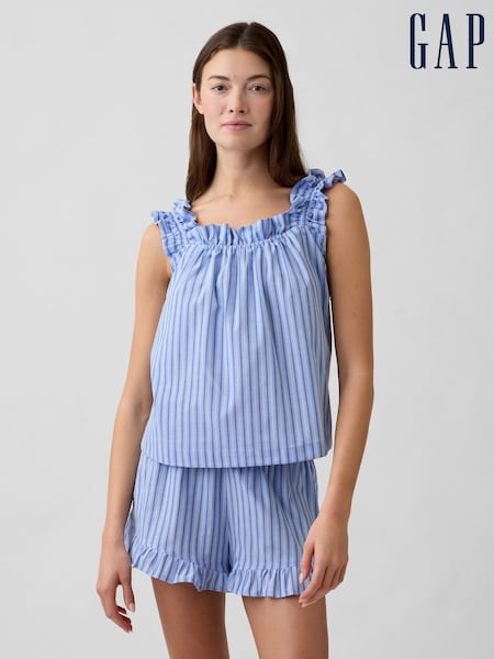 Gap Blue Stripe Ruffle Poplin Pyjama Top