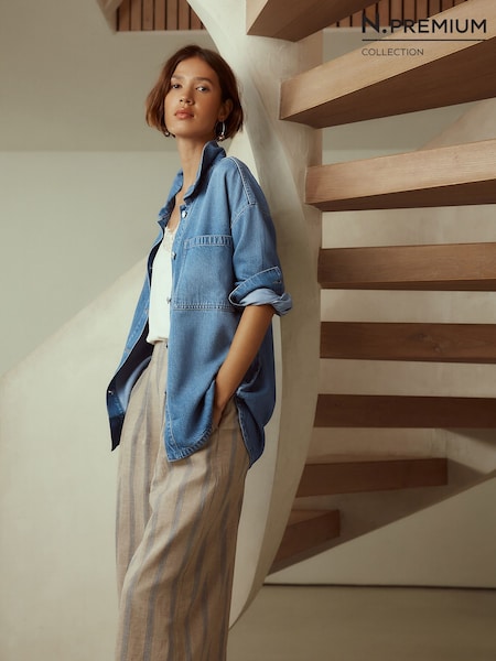 Mid Blue Denim Boyfriend Oversized Shirt