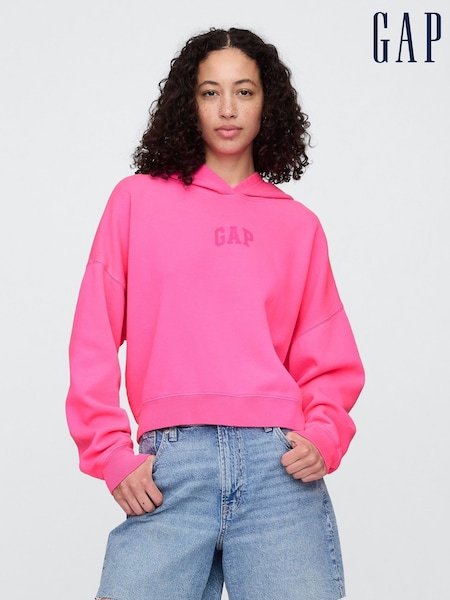 Gap Pink VintageSoft Oversized Crop Logo Hoodie
