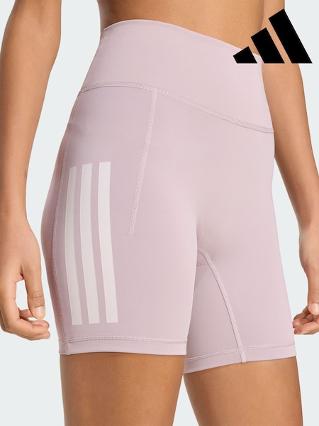 adidas Purple Optime Workout 3-Stripes Short Leggings 6 inch