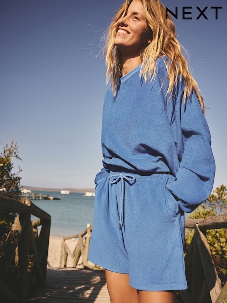 Cobalt Blue Toweling Long Sleeve Crew Neck Sweatshirt