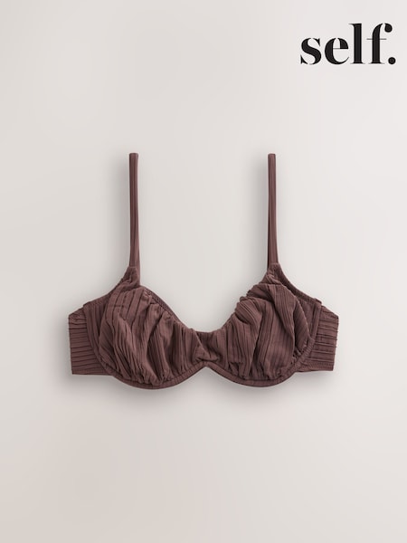 Chocolate Brown Textured Wired Bandeau Bikini Top
