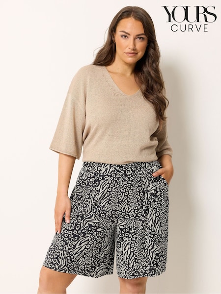 Yours Curve Khaki Green Leaf Print Pull On Jersey Shorts