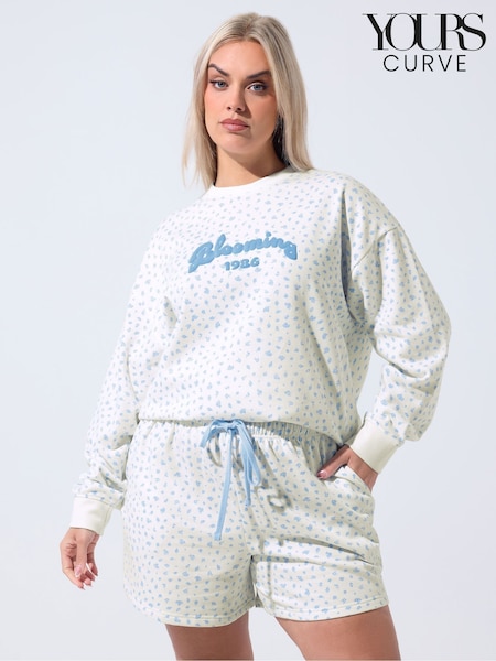 Yours Curve White Limited Ditsy Printed Shorts