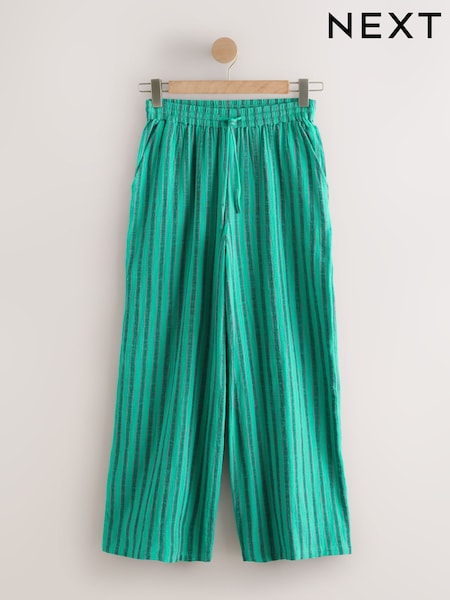 Teal Blue Stripe Wide Leg Pull On Trousers