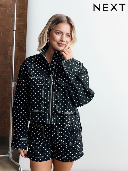Black/White Polka Dot Patch Pocket Shorts