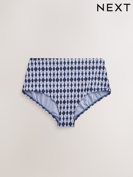 Navy Blue Geometric High Waist Hardware Bikini Bottoms