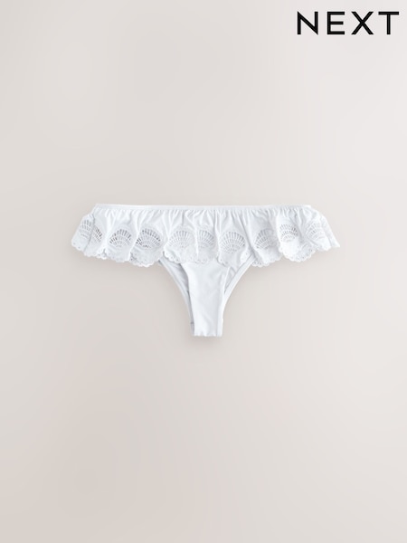 White Conversational Broderie Brazilian High Leg Bikini Bottoms