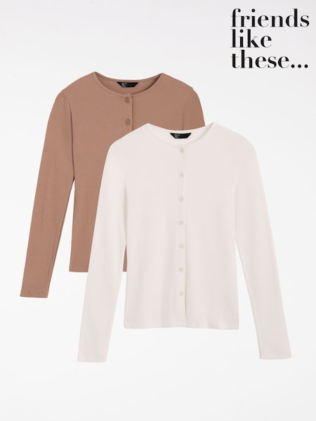 Friends Like These Brown and Ivory Henley Tops 2 Pack