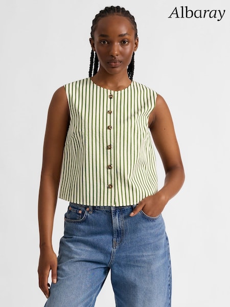 Albaray Green Stripe Button Shell Top