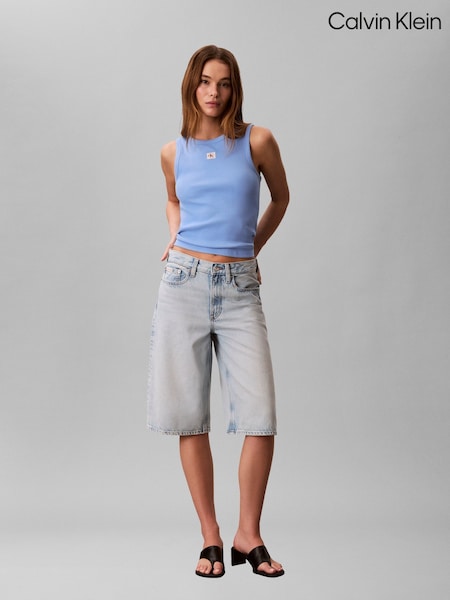 Calvin Klein Blue Ribbed Cotton Badge Tank Top