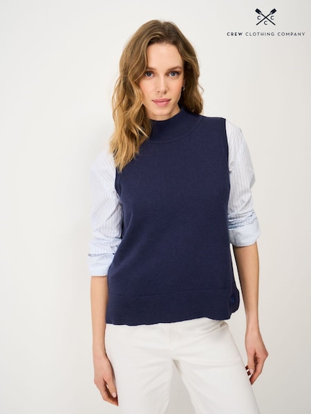Crew Clothing Company Blue Merino Blend Harmony Cable Knit Vest