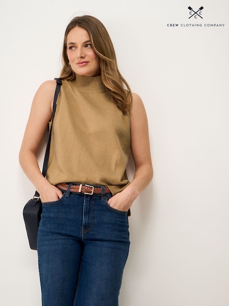 Crew Clothing Company Brown Wool Blend Funnel Neck Layering Vest