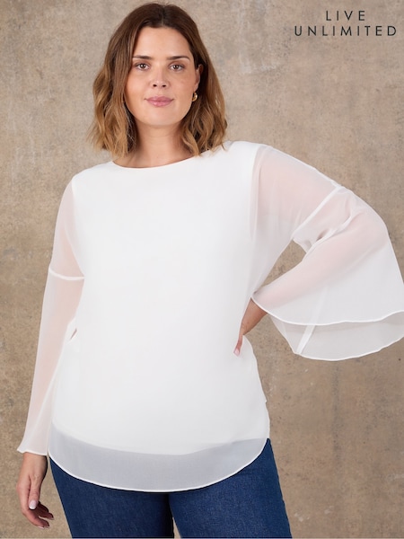 Live Unlimited White Ivory Angel Sleeve Overlay Top