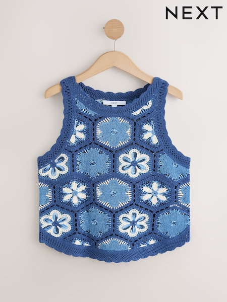 Blue Multi Crochet Knit Floral Tank